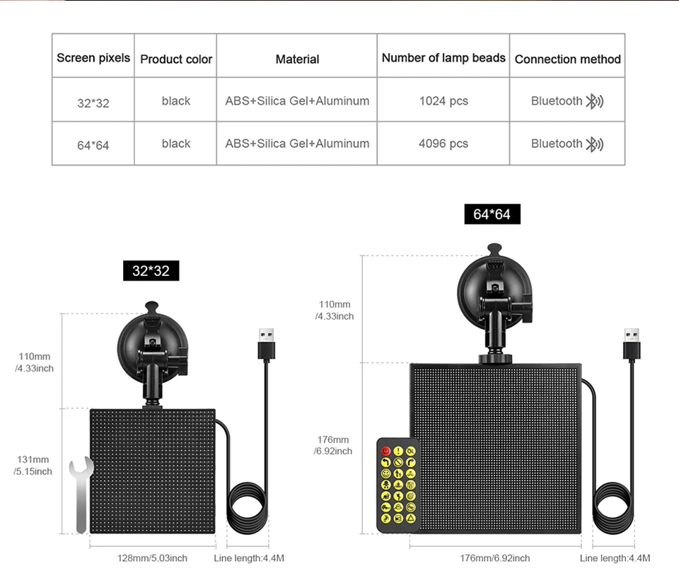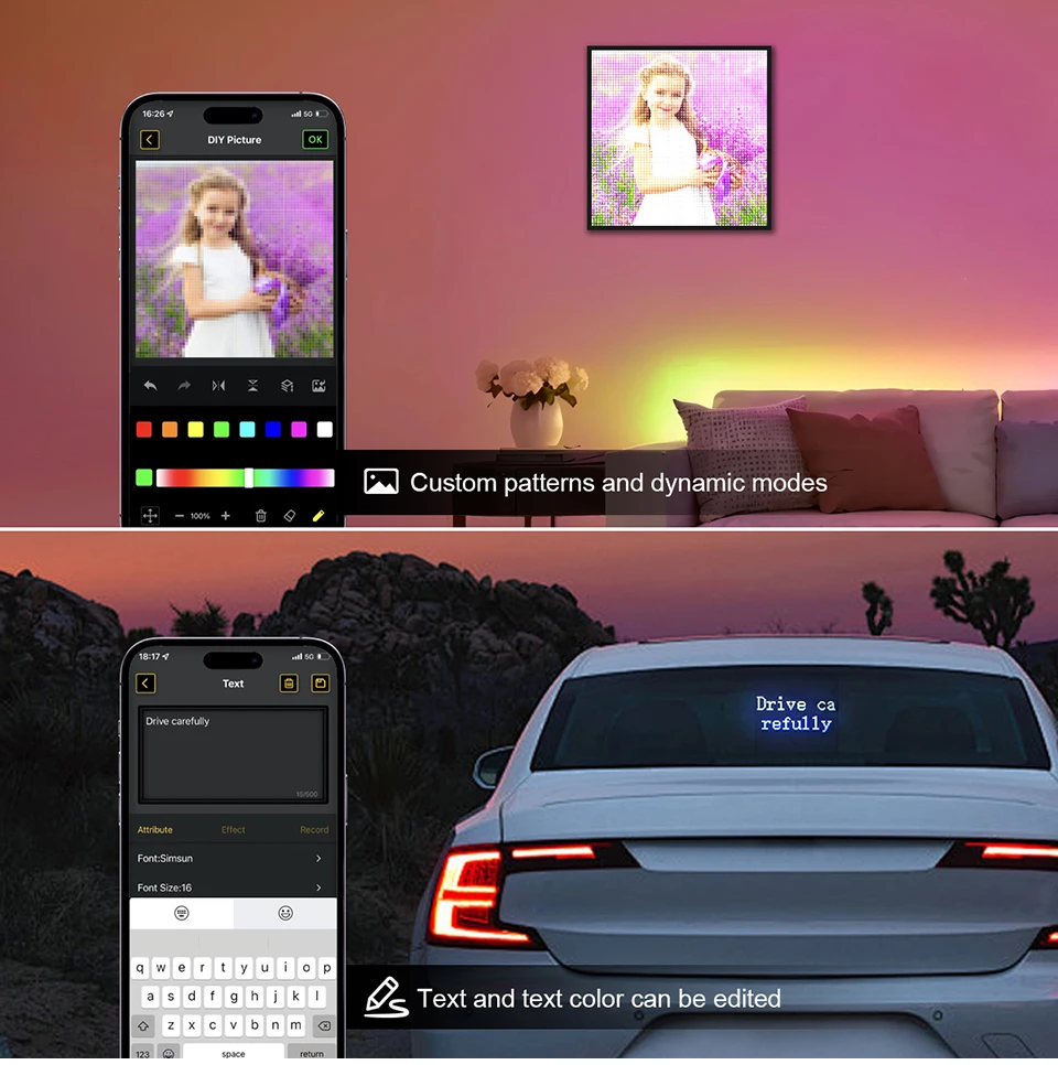 Creative DIY Car Pixel LED Sign With Smart Bluetooth Control & Music Mode