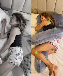 This reduces strain on the lower back, eases pelvic tension, and creates a natural sleeping posture that feels safe, supported, and relaxing.
