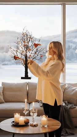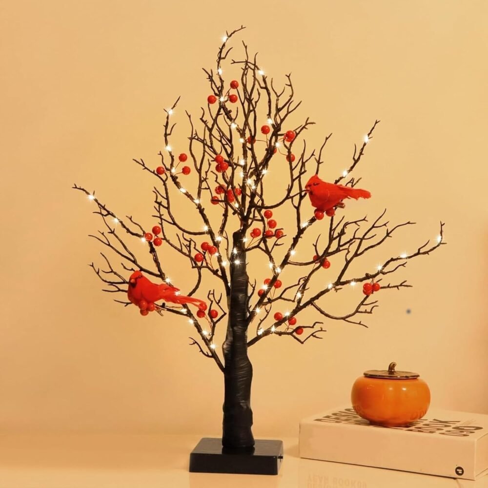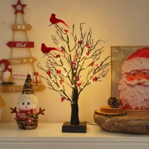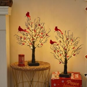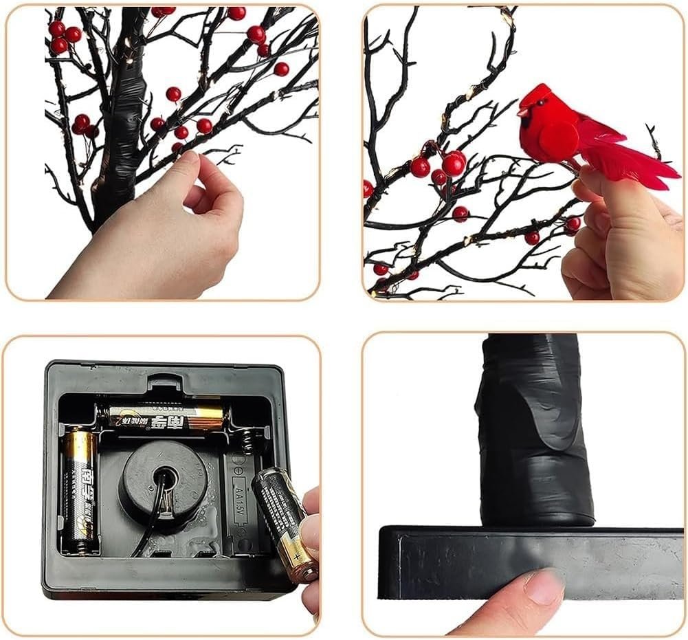 Desktop Ornament And Spring Festival Vintage Glowing Tree with Cardinals, Berries